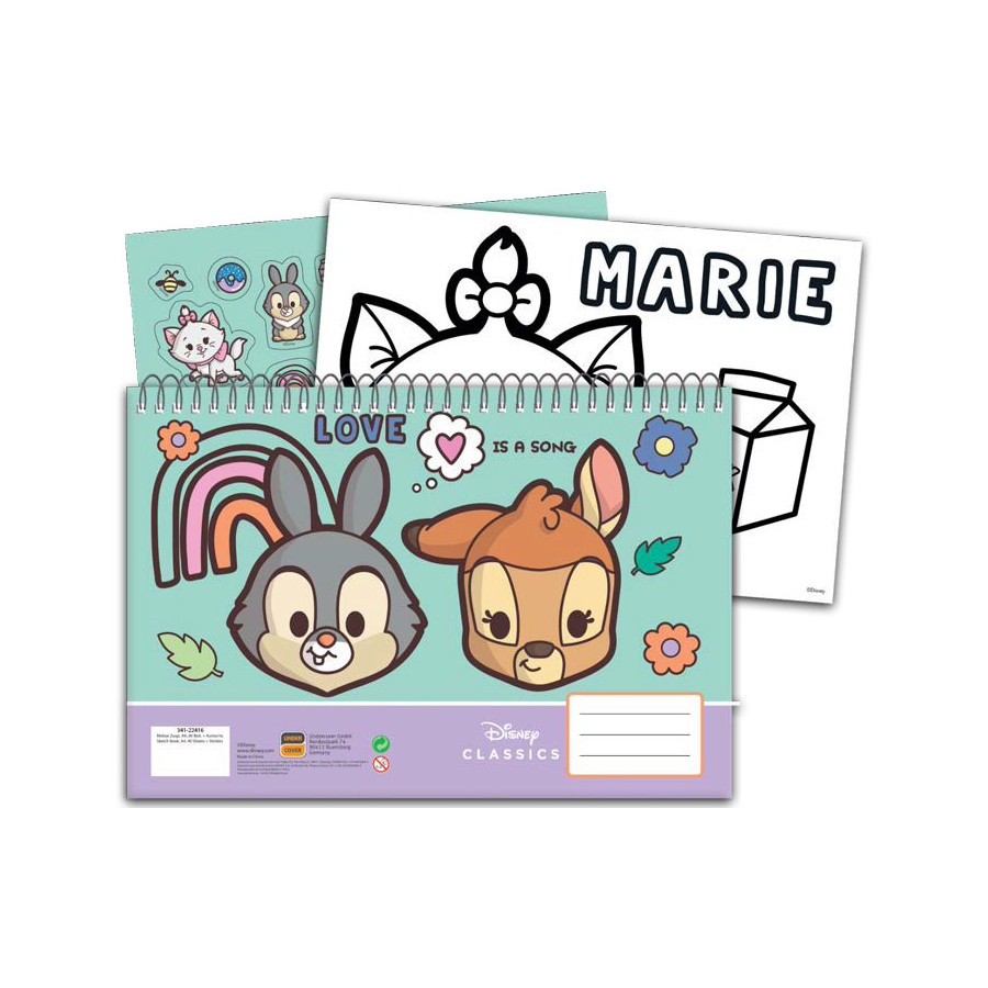 Disney Classics spirál vázlatfüzet, 40 lapos1 ív matricával és 3 db színezhető képpel!Méret: A/4 (23x33cm)