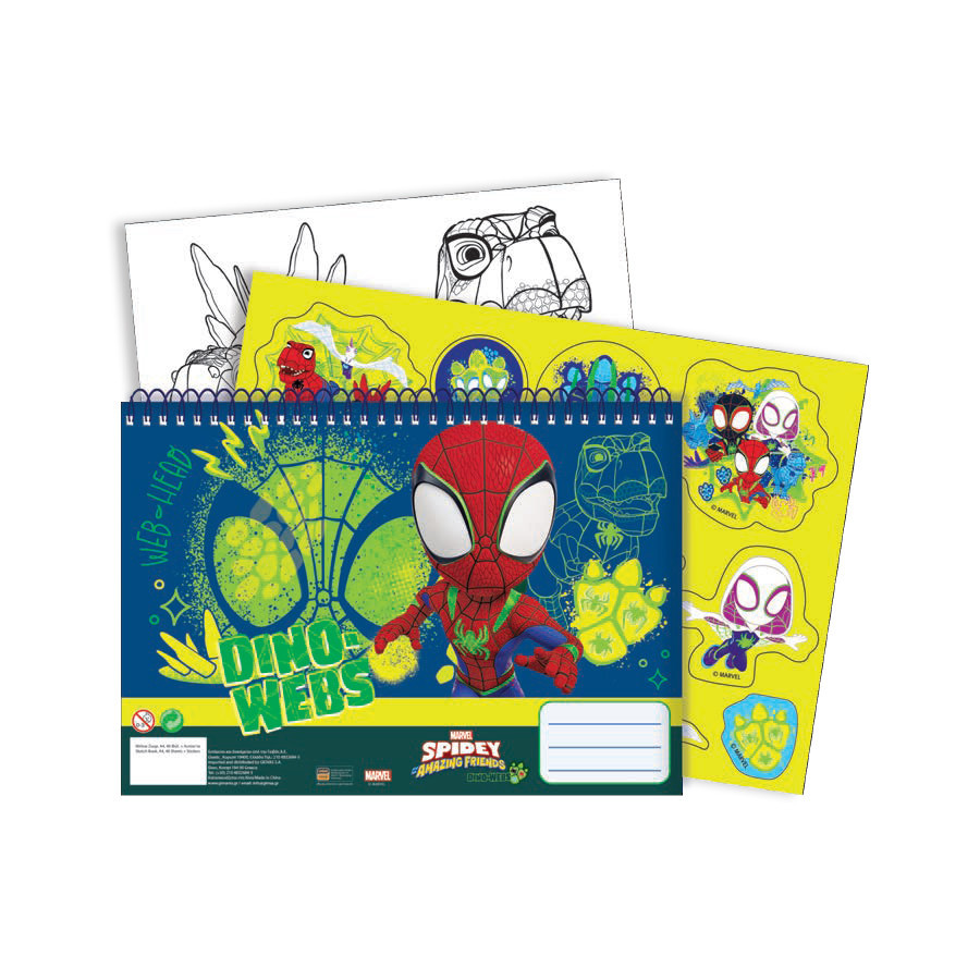 Pókember Spidey Dino-Webs A/4 spirál vázlatfüzet 40 lapos matricával