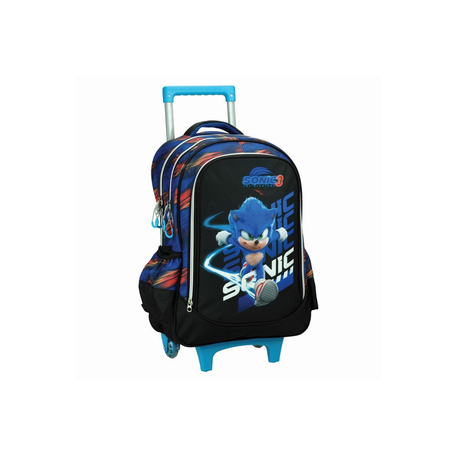 Sonic the Hedgehog, Sonic a sündisznó gurulós iskolatáska, táska Méret: 46x35x20 cmPántjai állíthatóak.Gurulós kialakítás.Három nagy cipzáras tárolóval rendelkezik, illetve két oldalsó kis zsebbel.
