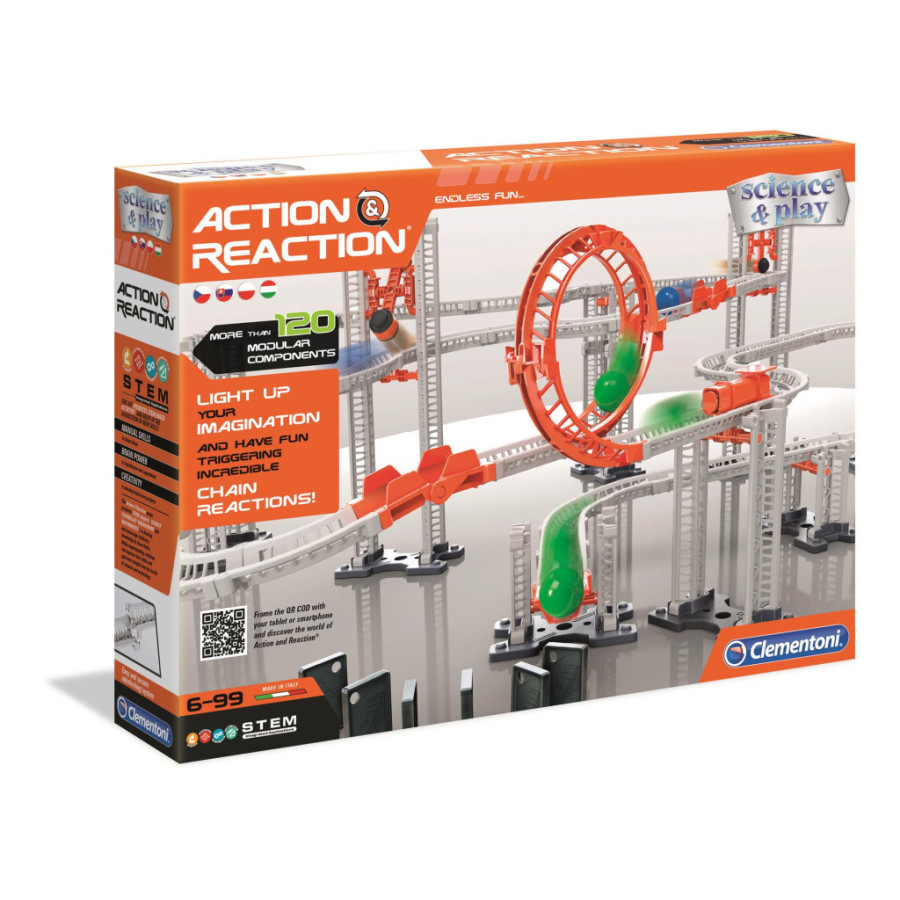 Hatás ellenhatás tudományos szett ClementoniMéret: 48x35 cmTartalma:- egyszerűen és szórakoztató módon fedezheted fel a fizika alapelveit- felépítheted pályarendszeredet, melynek kihívása, hogy olyan pályát alkoss, amelyen a végighaladó golyók hatására több elem is mozgásba lendüljön- felépítheted lépésről-lépésre az útmutató alapján, vagy megalkothatod azt saját képzeletedre- több mint 120 db moduláris építőelem- képes használati útmutató és QR kód alapján videó is3 éves kortól ajánlott!