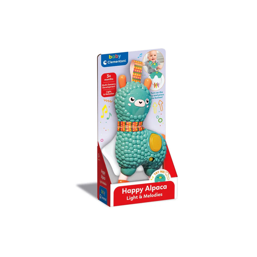 Alpaka baba csörgő ClementoniMéret: 15 cmDoboz méret: 22x15 cm- Világító gombok- A gombot megnyomva, dallamok és hanghatások szólalnak meg- Fejleszti a gyermek készségeit (látás, hallás, tapintás).- A gyűrű segítségével könnyen felakasztható bárhova- 3 hónapos kortól