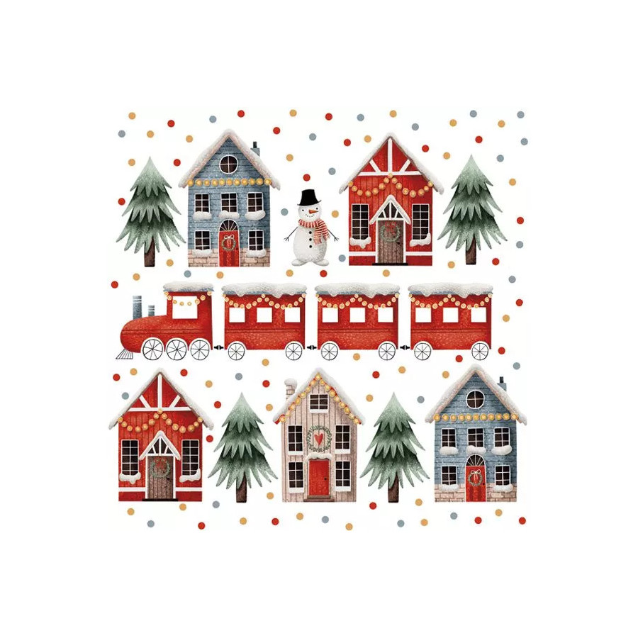 Karácsony Houses & Train szalvéta 20 db-os 33x33 cm