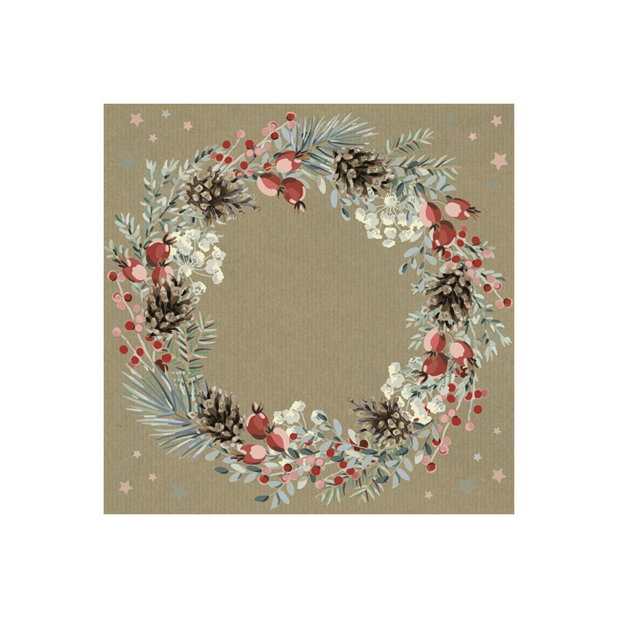 Karácsony Wreath on Kraft szalvéta 20 db-os 33x33 cm