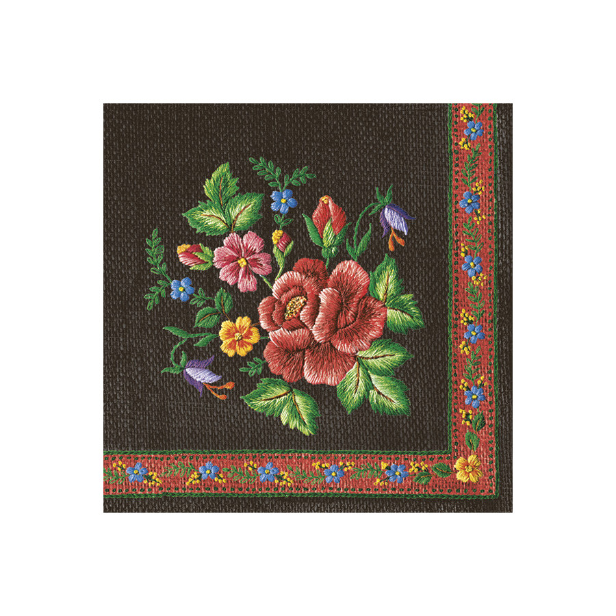 Hímzés Roses Mountain Black szalvéta 20 db-os 33x33 cm