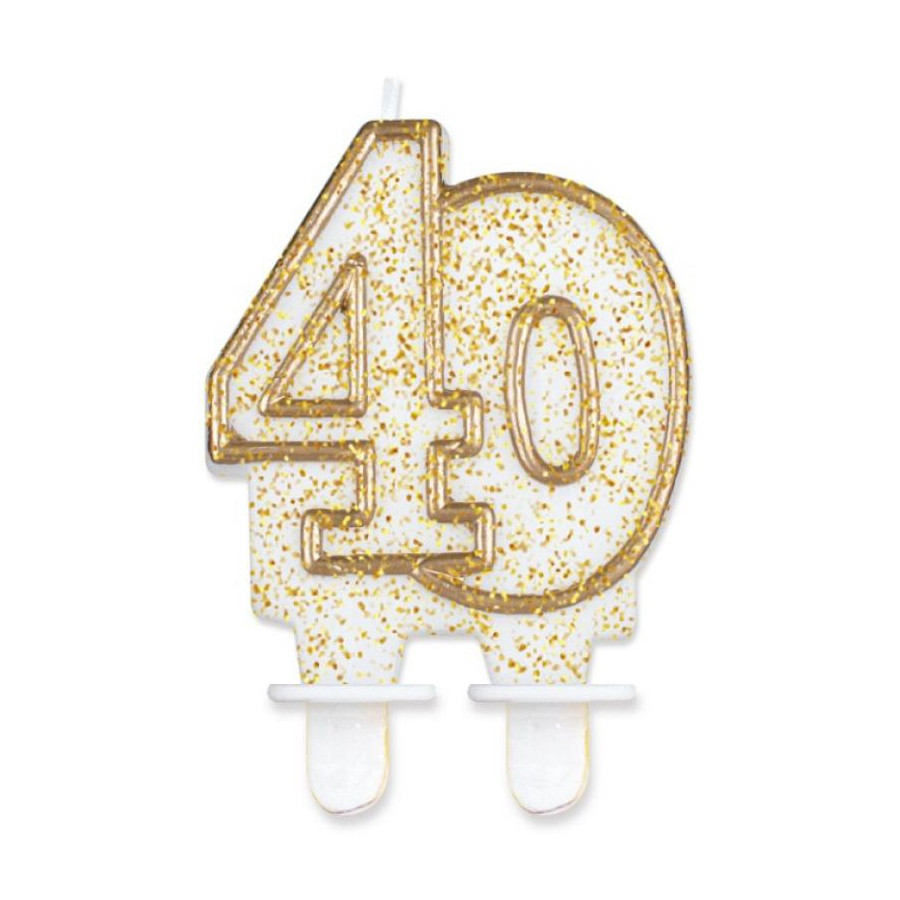Arany csillámos 40-es Gold tortagyertya, számgyertya
