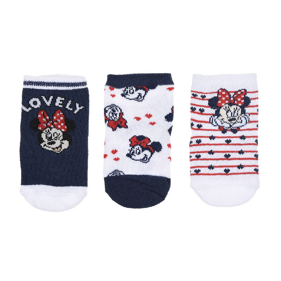 Disney Minnie Baba zokniAz ár 3 pár zoknira vonatkozik!Anyaga: 70% pamut + 23% poliészter + 5% poliamid + 2% elasztán.Méret: 6/12