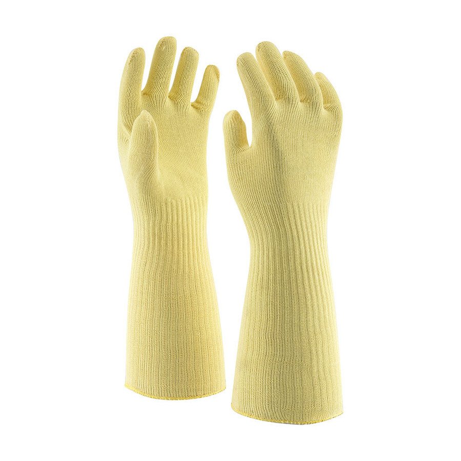 • Alapanyag: 100% Kevlar® • Tűfinomság: 10 • Kétszálas • Vágásbiztonság: 3/B • Kontakthő elleni védelem: 100 °C (33 mp) • Hossz: 40 cm • Saját gyártás • Szín: sárga